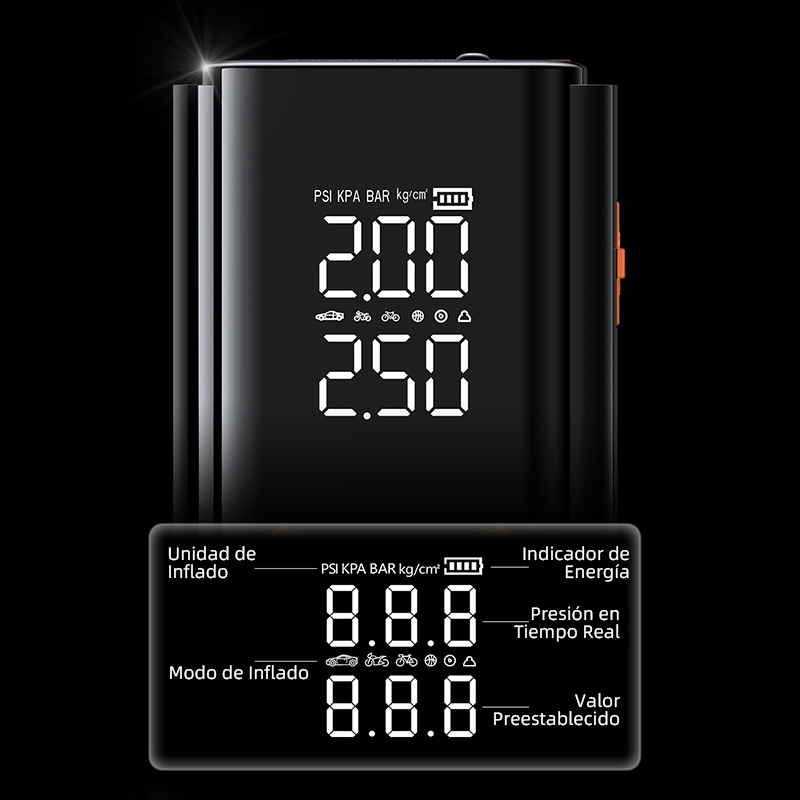 • Doble pantalla de alta claridad (cambio automático entre PSI/KPA)