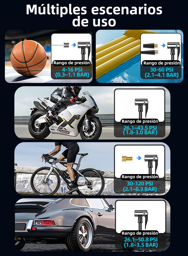 • Inflado en 360° en cualquier posición