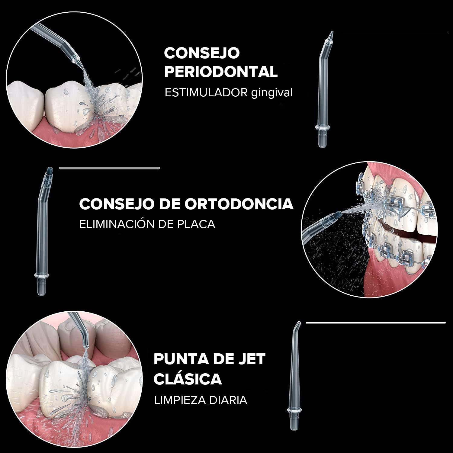 La irrigación dental mejorada con microburbujas de aire penetrará profundamente y eliminará incluso más placa y bacteria, para unos dientes y encías más saludables.