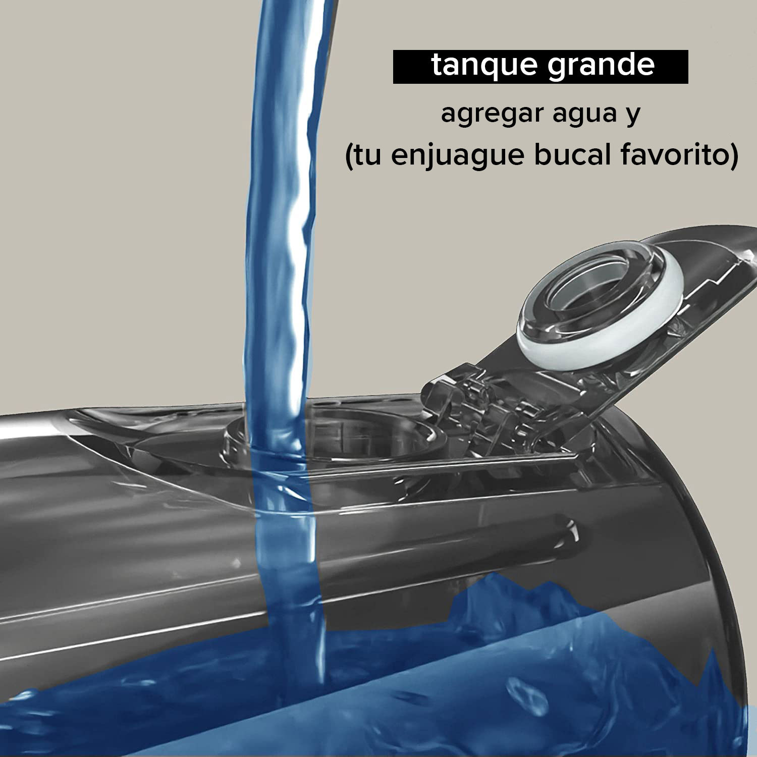 El recipiente de 200 ml es lo suficientemente grande para realizar fácilmente toda su rutina de cuidado bucal.