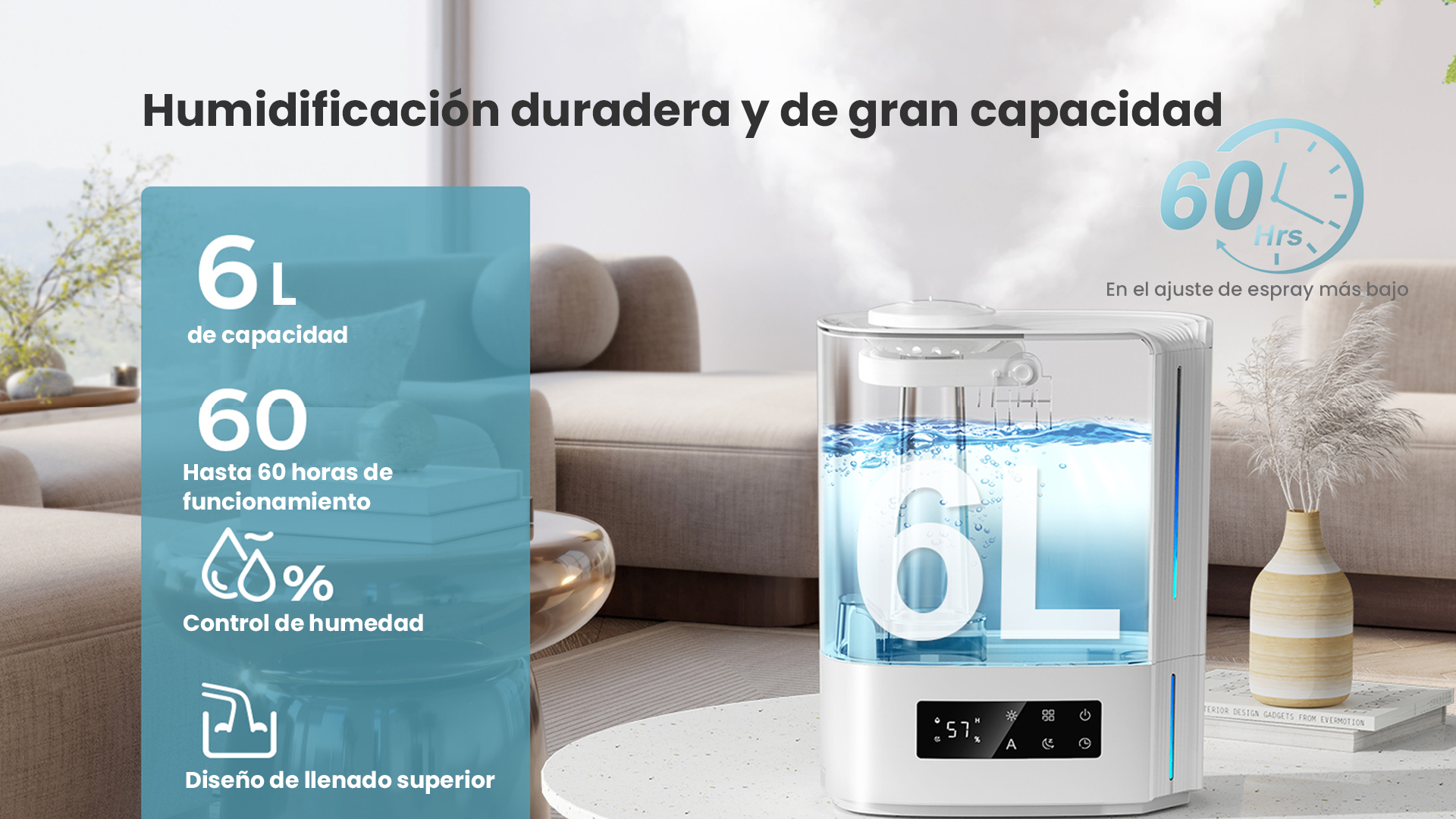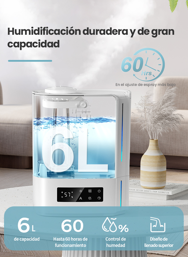 Omvix™ Humidificador de Aire Ultrasónico 6L