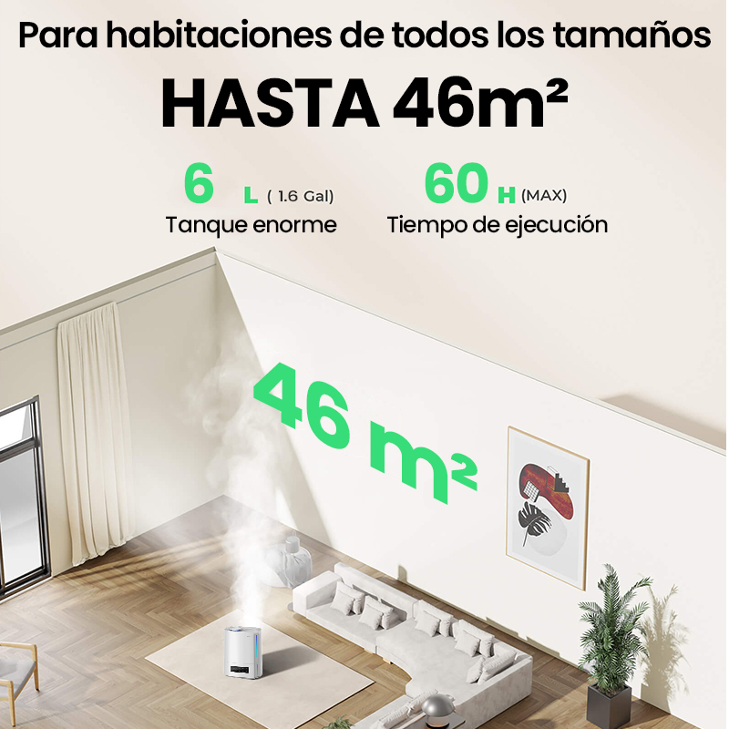 Este humidificador ajusta automáticamente la cantidad de pulverización según la humedad de la habitación. Con el higrómetro incluido, puede medir y ajustar la humedad para obtener el nivel perfecto. Use este humidificador con un ventilador o aire acondicionado para distribuir mejor el aire humidificado. Perfecto para humificadores de humedad y para mantener un ambiente cómodo en su hogar.