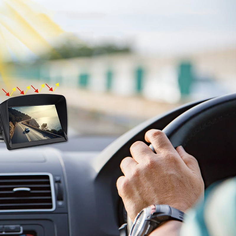 El paquete incluye: 1x GPS coche de pantalla táctil, 1x soporte reversible integrado, 1x parasol, 1x cable Type-C, 1x cargador USB para coche, 1x manual del usuario, 1x lápiz electrónico