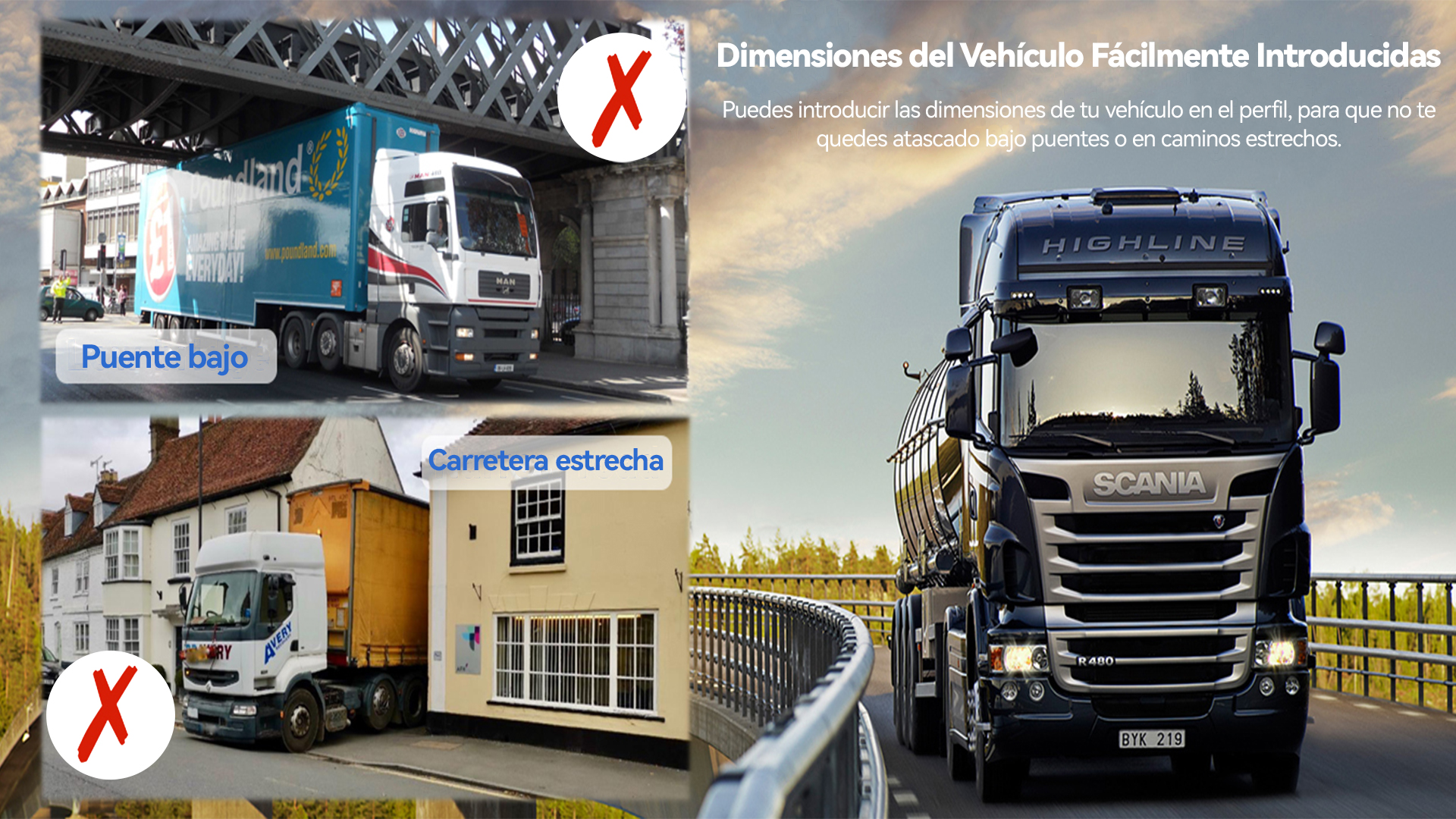 Omvix cuenta con una interfaz de usuario amigable y fácil de usar. Como conductor de camión comercial, entusiasta de campings en autocaravanas o viajero en coche, puedes alternar entre un camión y un coche simplemente cambiando el perfil, en lugar de necesitar más dispositivos de navegación. Es fácil de configurar y programar con altura, ancho y peso, lo que garantiza que no te dirijas por caminos demasiado estrechos o puentes demasiado bajos.