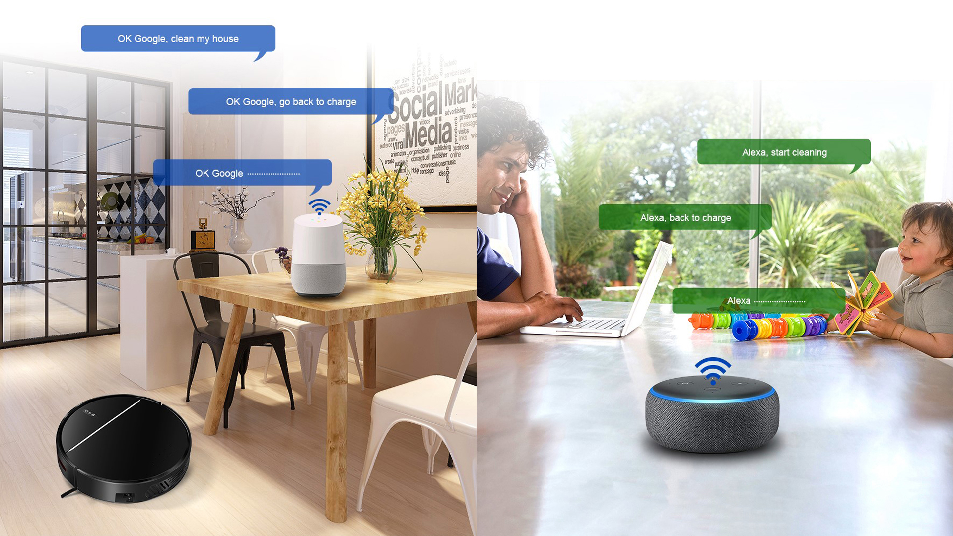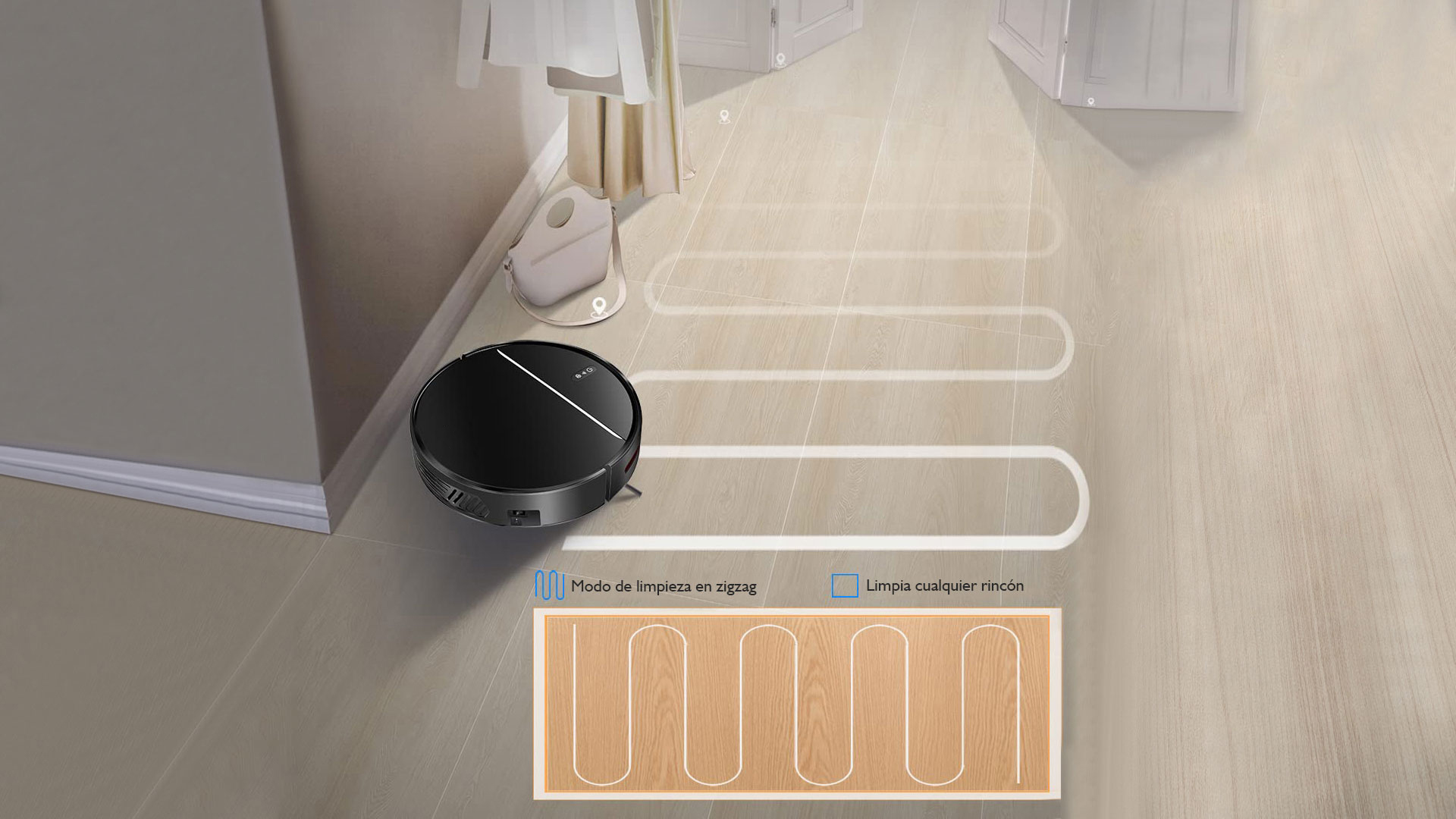 El robot aspirador posiciona toda la casa y organiza la limpieza de los tabiques. La ruta de limpieza compartida mejora significativamente la eficiencia de la limpieza.