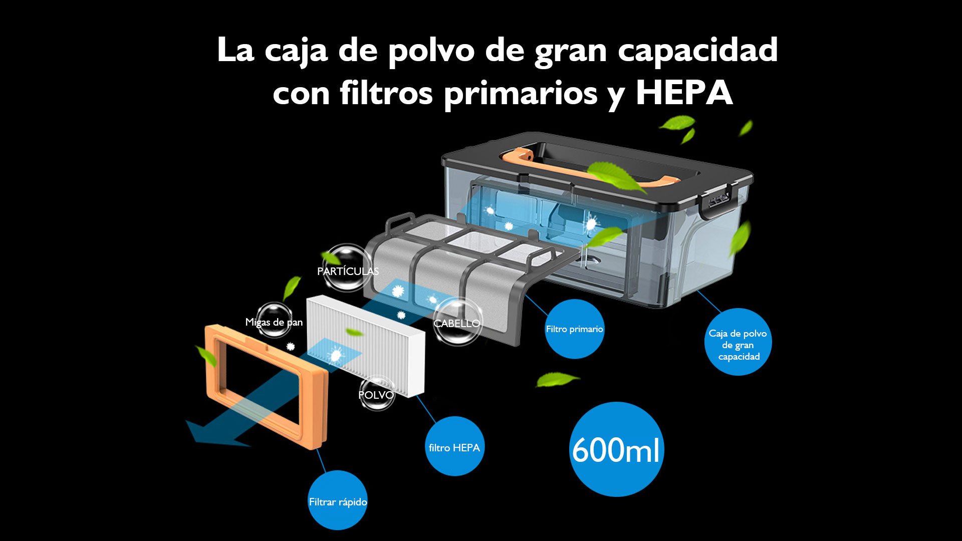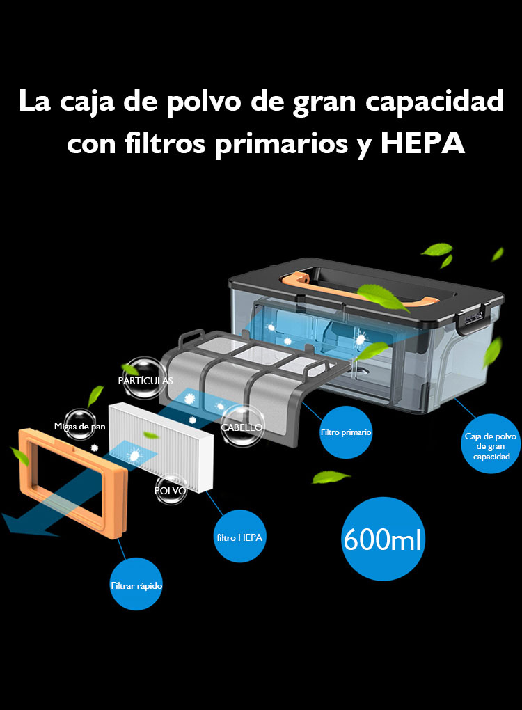 Capacidad de la caja de polvo: 600 ml