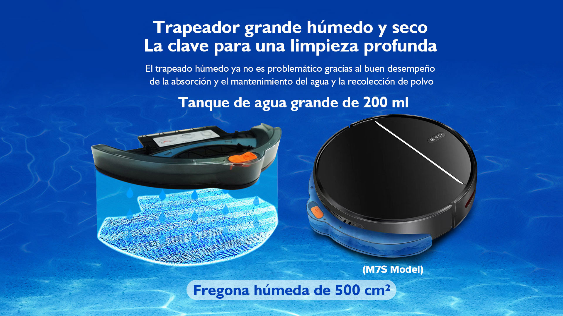 Es por eso que M7S tiene una función de trapeado incorporada que le permite limpiar sus pisos mucho mejor que usted mismo.